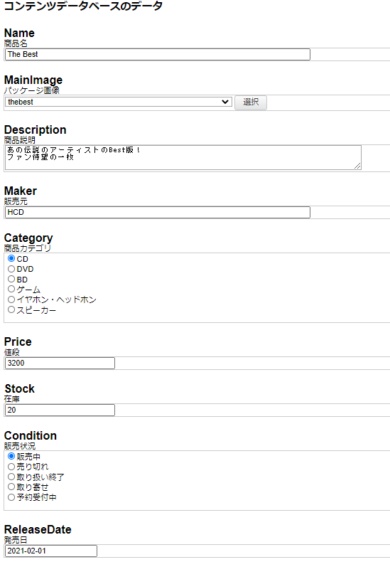 データベース「Product」の中でも特定のデータのみを表示したい場合は、「category=CD」のように条件指定を行うことも可能です。